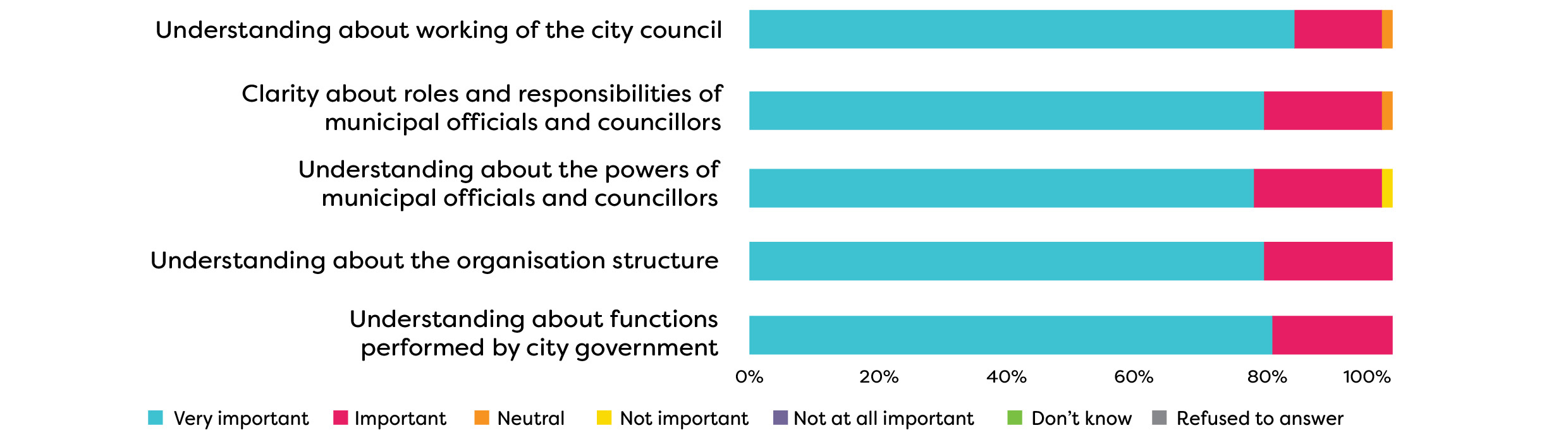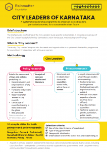 - Deliver a systematic leadership programme encompassing: 1. Induction programme when the new council is formed 2. Refresher training including contemporary topics (Ex. New laws/policies/schemes, new technology etc.) 3. Continual engagement with the city governments and councillors