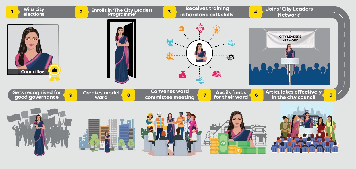 City leaders is a systematic leadership programme for councillors in India’s cities focusing on women leaders, to catalyse transformation of the quality of life in India’s cities, and make our cities inclusive
