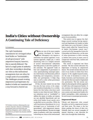 India’s Cities without Ownership EPW September 2018 By Vachana VR